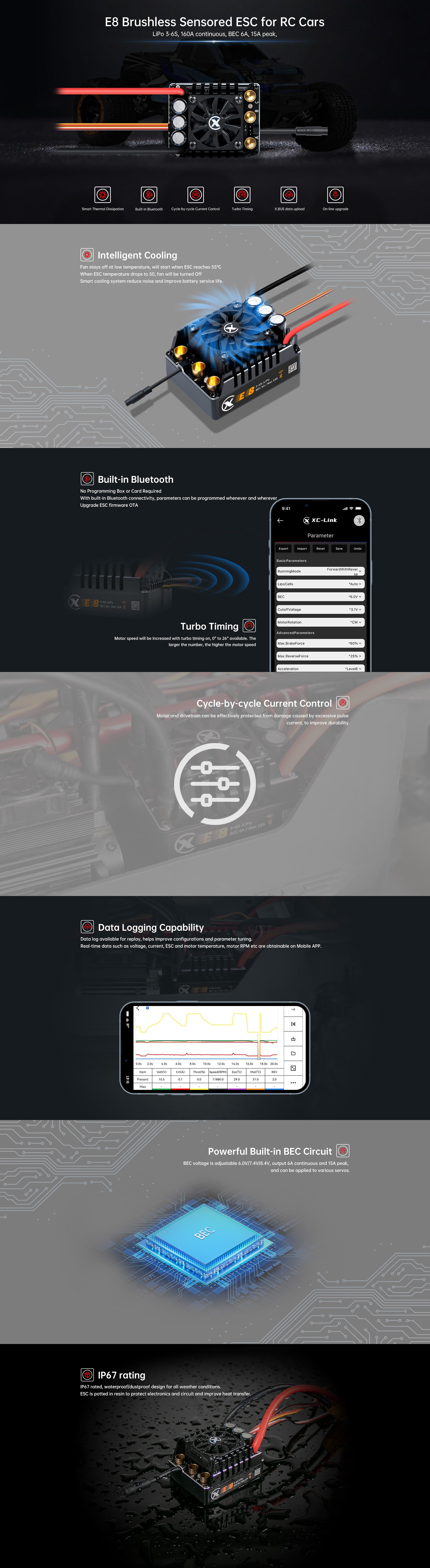 XC E8 ESC Electronic Speed Controller for RC Car 1/8th / 160A (3~6S)