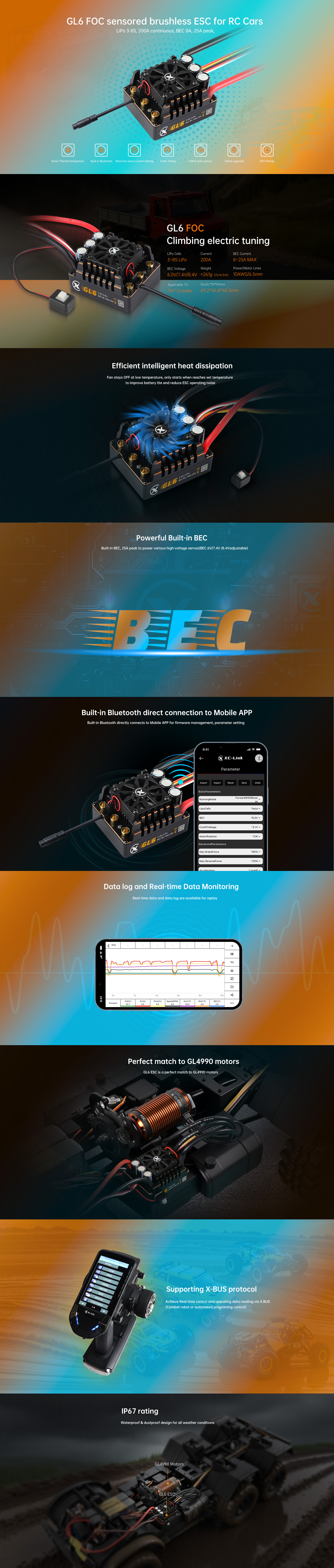GL6 RC Car Electronic Speed Controller 1/6 ESC / 200A (3~8S)